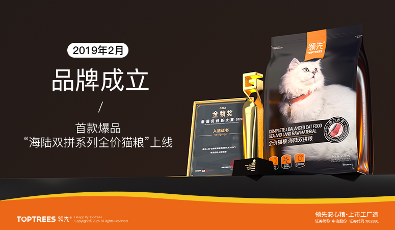 TOPTREES领先®致力于为每一位宠物家长及毛孩子们营养健康寻找解决方案,工厂由国内宠物食品首家上市企业中宠股份全资建设。采用国际化高端设备,严遵国际宠物食品研发标准,原材料可追溯,无菌安全生产,产品端口做到真正的“有品质、敢透明”。